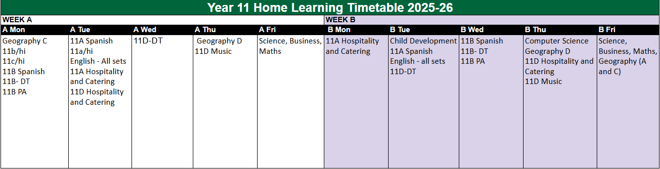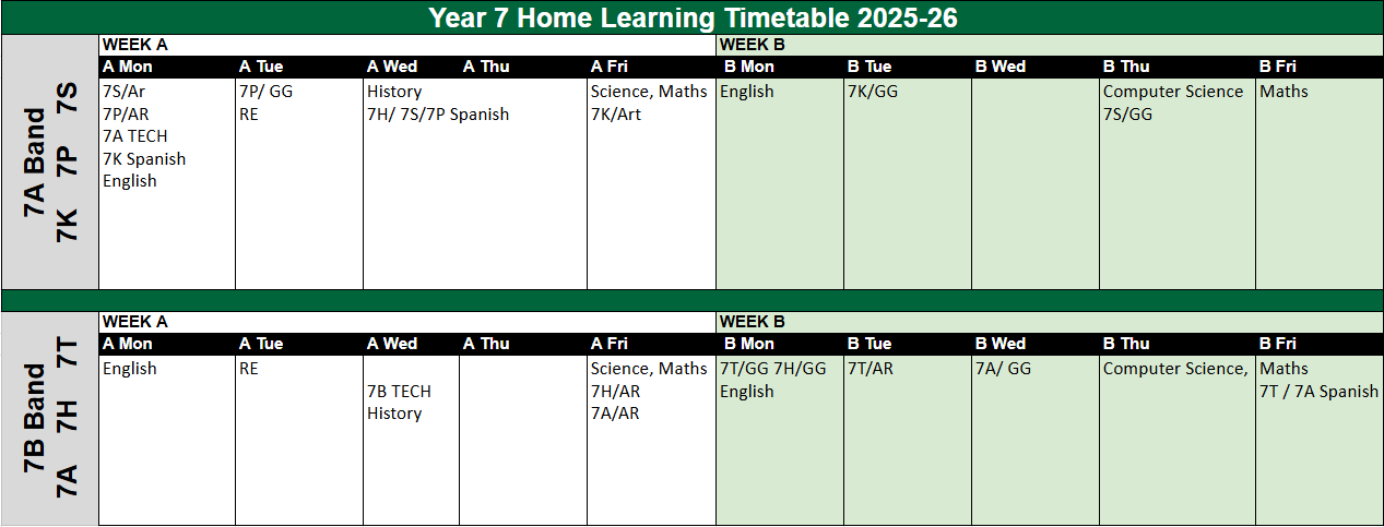 Home Learning for Years 7-9 will be set as given by each faculty policy.