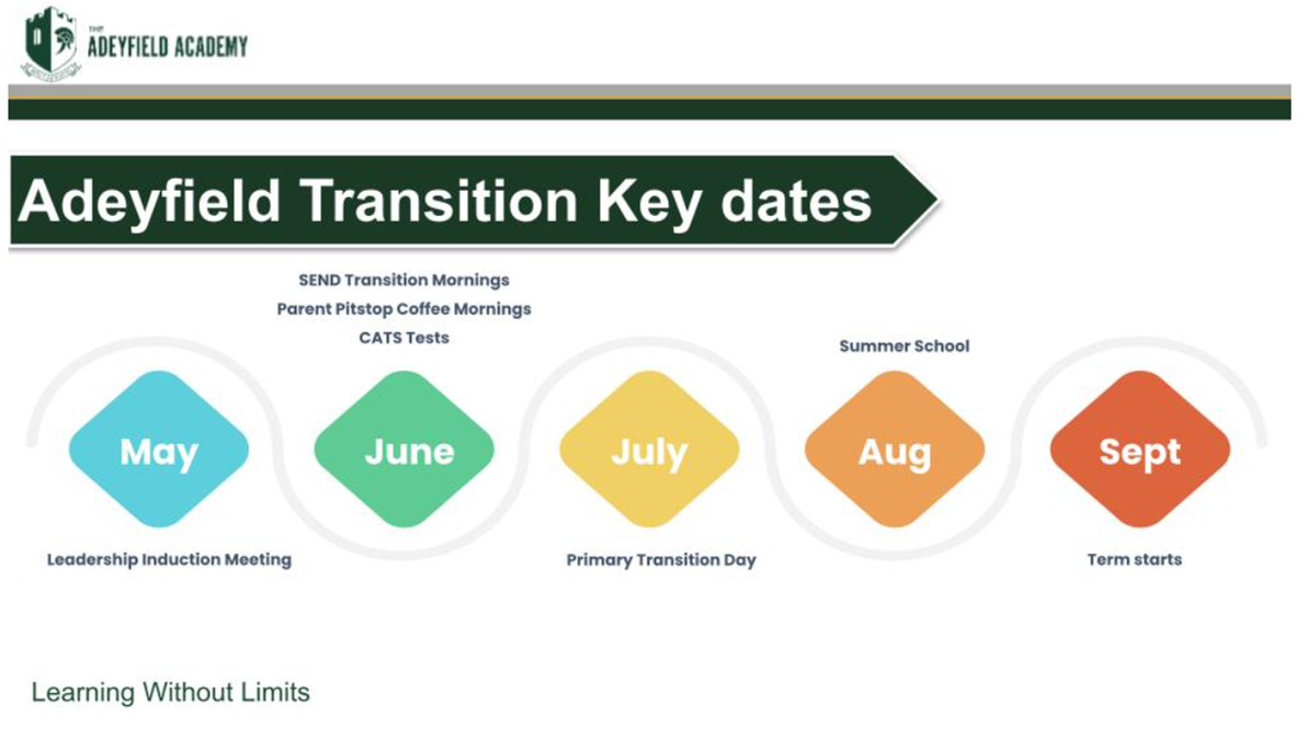 If you would like to discuss additional information and support, please do not hesitate to contact us and we will be happy to arrange this. Please email Miss Polson using transition@adeyfield.herts.sch.uk and we will contact you to arrange your visit and provide any additional information you may need.
