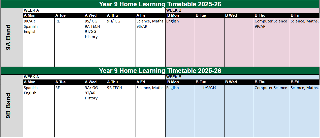 Home Learning for Years 7-9 will be set as given by each faculty policy.